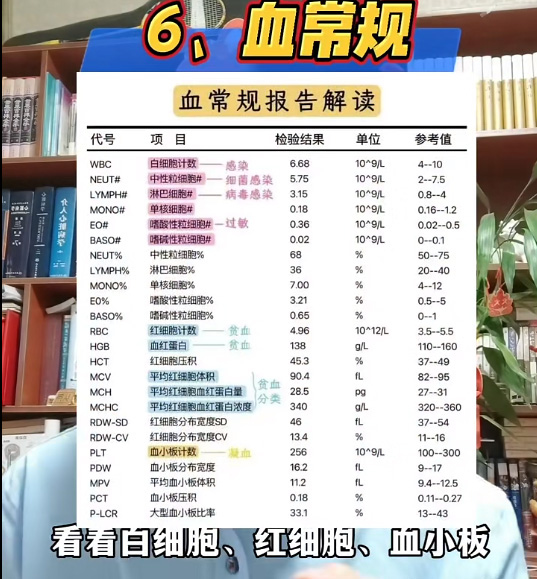 因?yàn)槿绻哐獕和瑫r(shí)合并了同型半胱氨酸升高那么腦梗的風(fēng)險(xiǎn)就會(huì)增加。所以很有必要對(duì)高血壓的人來講,查一個(gè)同型半胱氨酸。血糖血脂100個(gè)人中就有10個(gè)糖尿病的人數(shù)據(jù)來源《中國(guó)血脂管理指南》。長(zhǎng)期高血脂糖尿病,如果沒有得到有效的控制,會(huì)增加血管堵塞的風(fēng)險(xiǎn),所以我們要查一查我們的血脂四項(xiàng),查一個(gè)空腹血糖。也沒必要做一個(gè)生化全套。意義不是很大。高尿酸容易引起痛風(fēng)。也會(huì)增加心血管疾病的風(fēng)險(xiǎn)。尿酸一般在這個(gè)腎功能當(dāng)中,順便查一下肌酐、尿素氮、電解質(zhì)、鉀鈉氯。肝功能的簡(jiǎn)項(xiàng),肝功能也有很多種,查相對(duì)比較簡(jiǎn)單的,別整太多的。最后就是差血常規(guī),看看白細(xì)胞、紅細(xì)胞、血小板看看有沒貧血也就足夠了。其實(shí)就是抽兩管血,這也是最基礎(chǔ)最重要的幾個(gè)檢查項(xiàng)目。