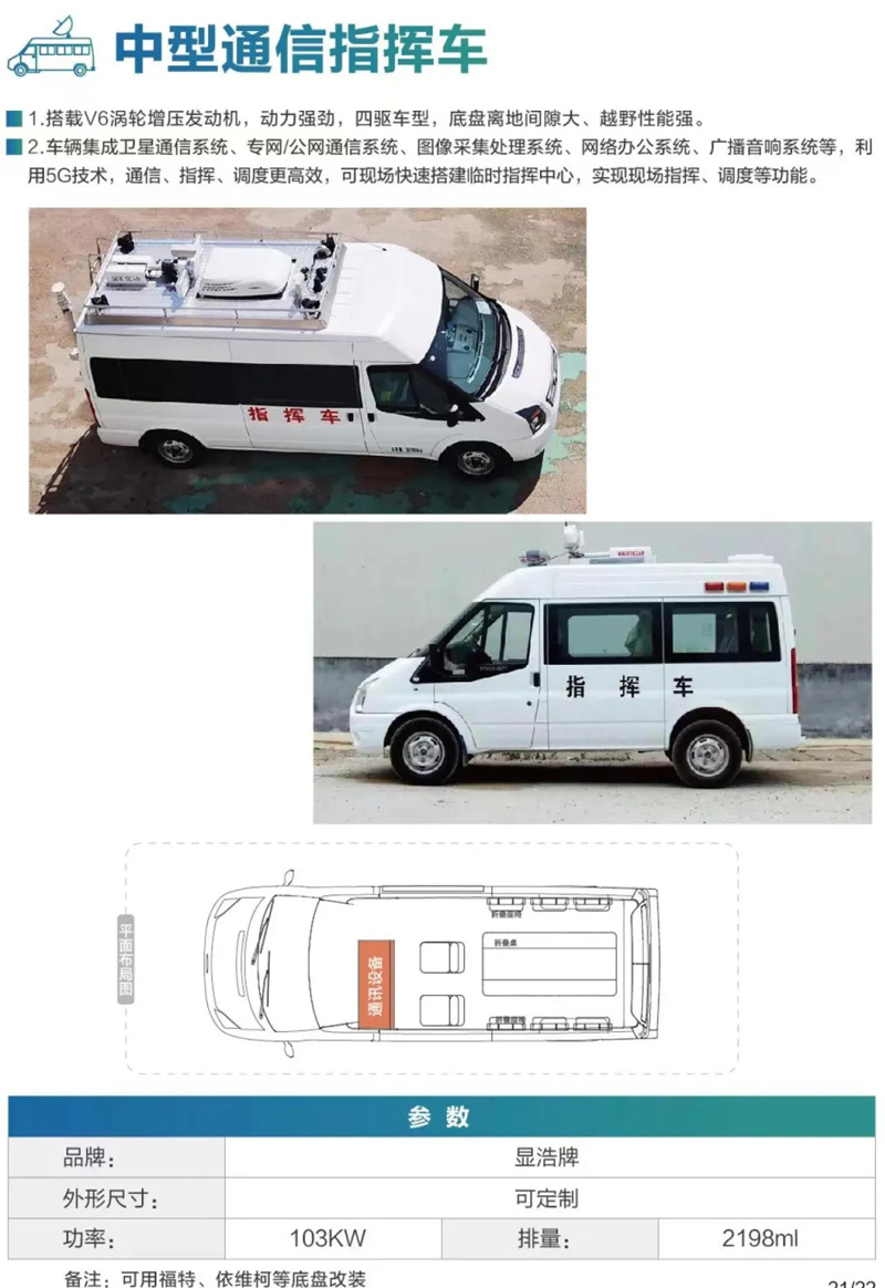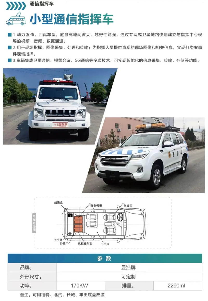 顯浩牌可用福特、北汽、長城、豐田底盤改裝中小型通信指揮車