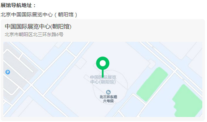 展館導航地址:北京中國國際展覽中心(朝陽館)
