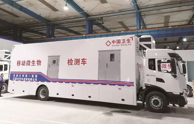 顯浩特種車制造升級微生物檢測車,P2+移動生物安全實驗室保護級別。檢測車具有非常高的機動性能,高效率,性價比高等特點。最高日檢測能力可達1000份,混合檢測的話可以達到1萬份??梢詽M足快捷安全高效的微生物檢測任務(wù)。實現(xiàn)應(yīng)檢必檢,愿檢盡檢,滿足疫情防控常態(tài)化的需求。這個可以說是移動PCR實驗室車功能移植的新產(chǎn)品。符合GB27421-2015移動式實驗室生物安全要求及RB/T142-2018移動式生物安全實驗室評價技術(shù)規(guī)范。