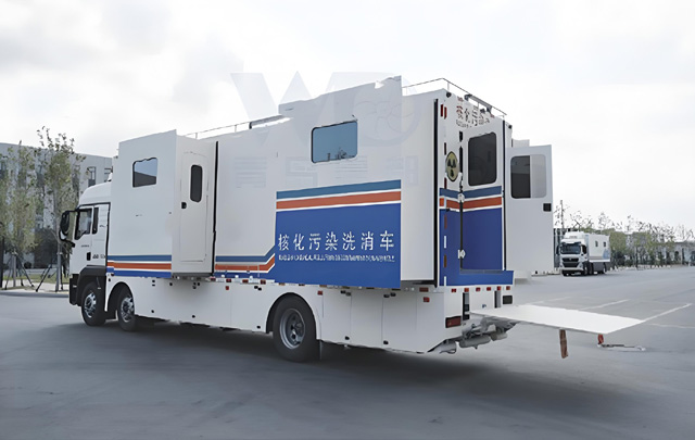 核化污染洗消車(chē)能夠?qū)崿F(xiàn)快速發(fā)展開(kāi)展被核化污染管理人員的現(xiàn)場(chǎng)去污洗消,可放置在核化損傷救治基地建設(shè)作為一個(gè)二次洗消用房。在核化突發(fā)事件中,核化污染洗消車(chē)化學(xué)放射物質(zhì)洗消的首選裝備。