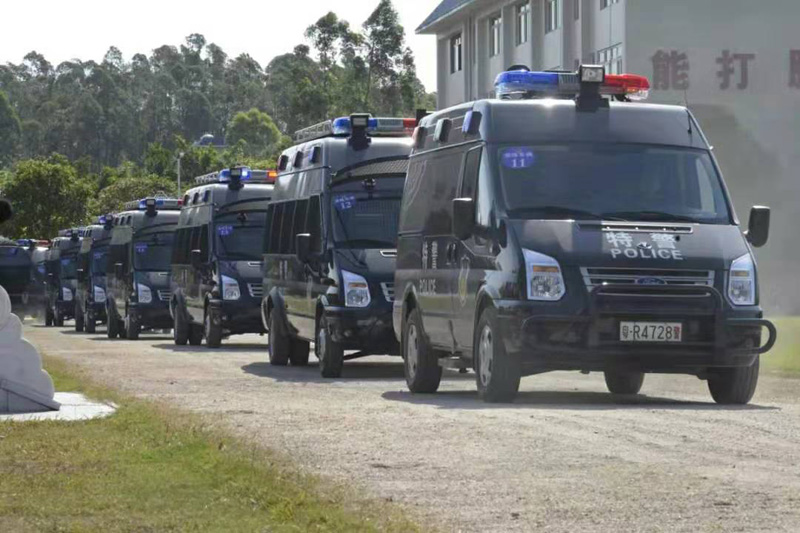 軍警車適用于特警、武警用于執(zhí)勤,追逃,反恐處理突然事件,也可以應(yīng)用于警戒等需求,集成性安全性舒適性一體的新型警用車輛。車身采用國際流行的楔形裝甲車的外型設(shè)計。軍警車外型威猛剛勁。車身采用進(jìn)口防彈材料制作并采用跳彈結(jié)構(gòu),防彈設(shè)計。軍警車座椅及內(nèi)飾材料采用真皮軟包;軍警車加裝空調(diào)、暖風(fēng)、換氣扇等,保證車內(nèi)環(huán)境的舒適性,射擊孔,炮塔等配置豐富,滿足各種處突需求。