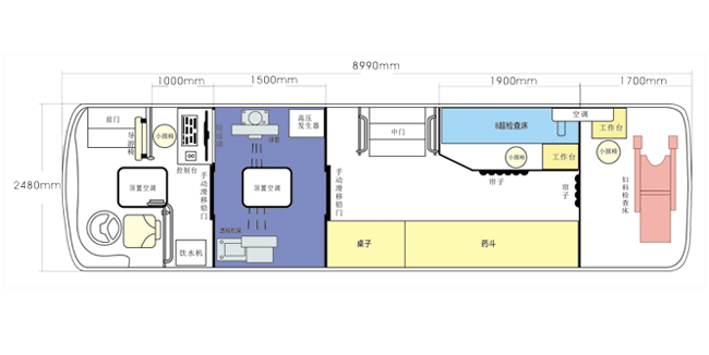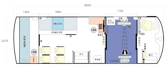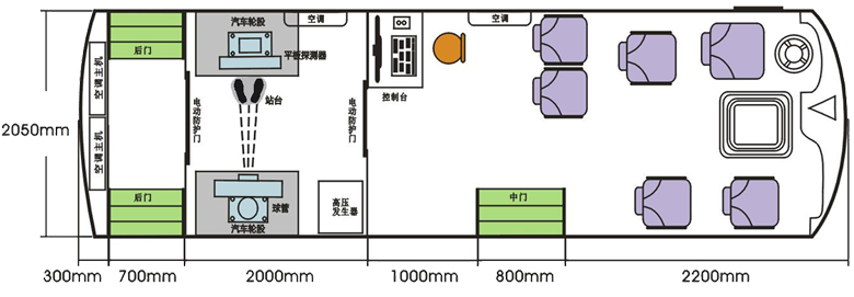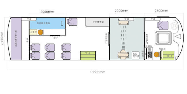 DR體檢車立鉛防護室,把DR鉛防護室安裝體檢車中心,圖像數(shù)字化處理成像準確。比醫(yī)院的科室DR便捷,而且有相當不錯的抗震效果,在生產(chǎn)DR車的時候,考慮到車載DR較科室DR功率略小,在體檢車上定制車載DR能高效完成放射類體檢項目。其放射X劑量少很多,也讓移動體檢車在行駛過程中更安全。采用三層以上噴涂噴砂技術、防銹防腐、光亮鈀漆技術。