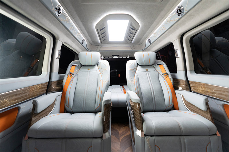 前排保留原車質感同時,加入全新設計語言,簡約現(xiàn)代與中式美學相結合,雙色搭配,更顯高級感,主副駕駛座椅采用納帕包覆,直接提升整車質感,還可提升舒適度,讓主副駕駛位,都能有一個尊貴體驗改裝商務車的質感、觸感雙升級,十分明顯商務接待、長途旅行都能享受視覺與觸覺的“心靈棲息”