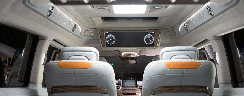 改裝商務車集成式總控顯示屏,燈光、音響、投影,一觸即控,隨時辦公 休閑,配備懸浮式多媒體屏幕雅馬哈音響系統(tǒng)3M輕量型隔音