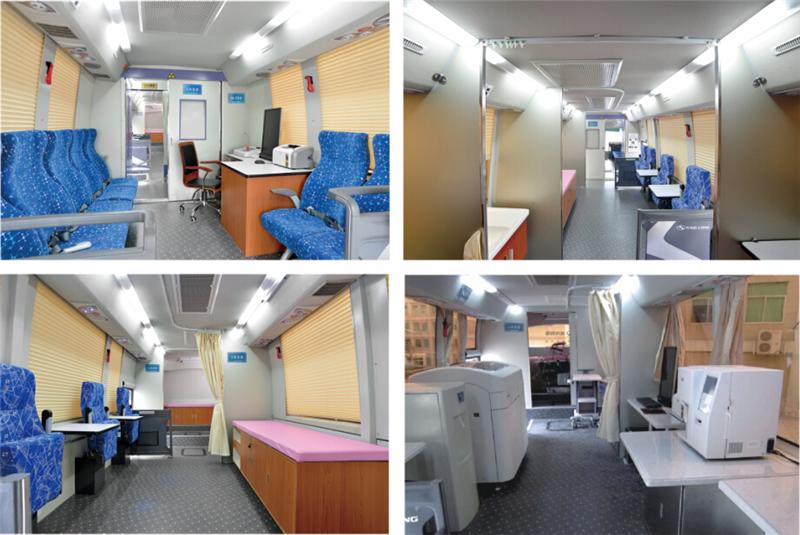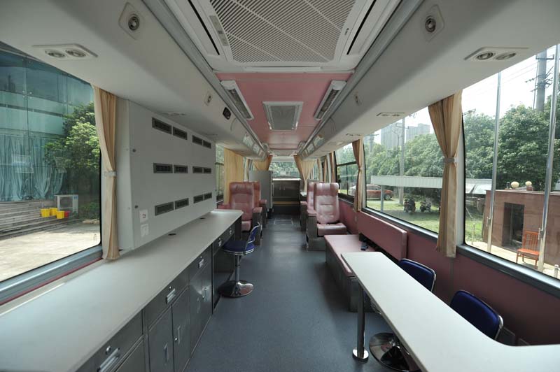 專業(yè)的流動(dòng)獻(xiàn)血車征詢區(qū)、體檢區(qū)、采血區(qū)、休息區(qū)布置合理,綠色、環(huán)保的特點(diǎn),實(shí)現(xiàn)廢氣零排放。車內(nèi)配置了頭等艙式獻(xiàn)血椅,獻(xiàn)血車實(shí)際所用到醫(yī)療設(shè)備一應(yīng)俱全,總體空間十分寬闊。大部分流動(dòng)的獻(xiàn)血車都有冷暖空調(diào)系統(tǒng)、熱合機(jī)臺(tái)、醫(yī)用血液冷藏箱、工作臺(tái)椅、飲水機(jī)、烘手機(jī)、配電柜、采血椅、采血臺(tái)、紫外線消毒燈、 污物桶、滅火器、排風(fēng)系統(tǒng)等。全車配備先進(jìn)的平穩(wěn)支撐系統(tǒng),配置了網(wǎng)絡(luò)WIFI,空氣凈化消毒系統(tǒng),確保獻(xiàn)血活動(dòng)開展時(shí)車內(nèi)空氣的潔凈衛(wèi)生,是一個(gè)移動(dòng)體檢中心可用于現(xiàn)場(chǎng)體檢和采血。